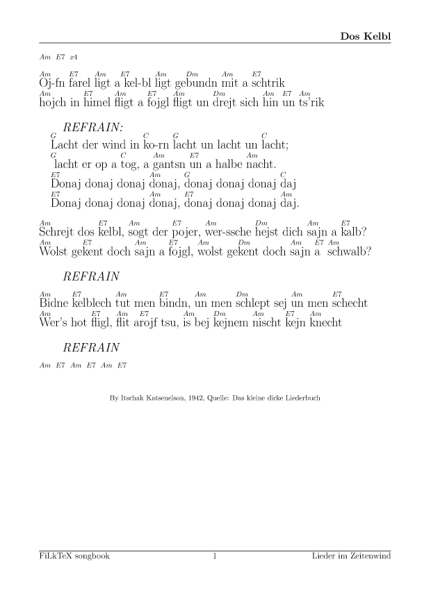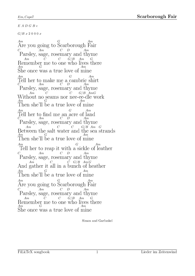 Anders als auf meiner alten Seite will ich die Lieder hier leichter nutzbar (und direkt druckbar) machen. Für alle Lieder hier gibt es die Quellen in meinem FilkTex Liederbuch Repository. Wenn ich keinen Namen dazuschreibe, ist das Lied von mir.